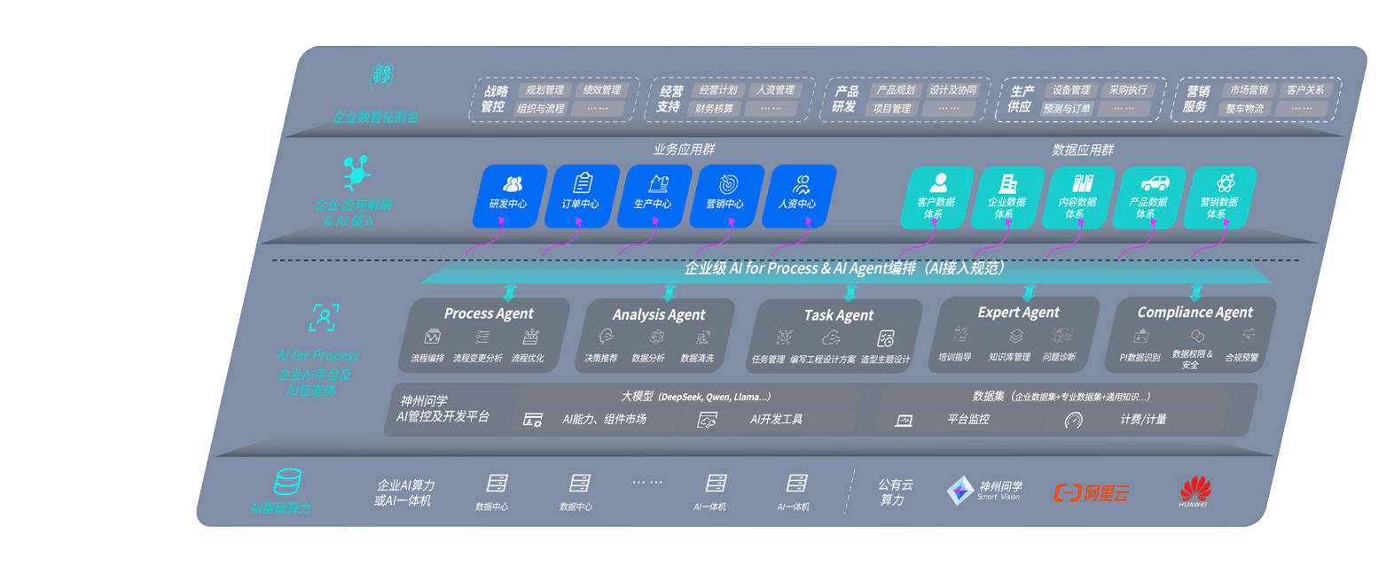迪威国际问学智车解决方案是一套基于AI技术的汽车行业智能化系统,,,覆盖从底层算力到顶层AI应用的全栈方案。。方案由算力层、、、、模型层和应用层组成:算力层,,,,方案支持多种一体机配置,,具备云端灵活部署、、多云适配以及动态优化计算资源的能力;模型层,,迪威国际问学平台版提供了企业级AI应用一站式构建与管理平台,,,支持基于后训练强化技术的汽车企业专属模型的训练、、、、评测和运营;应用层,,迪威国际问学DeepSeek版提供包括超级员工、、智能招采、、、、智能营销、、、、智能客服、、、AI for BI等一系列解决方案,,,可助力汽车行业实现数字化转型,,,让管理更智能、、响应更敏捷。。。