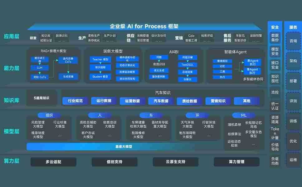 端到端的一站式AI工作空间深度融合了从企业战略规划到日常经营的全流程业务板块,,,定向解决车企内部领域多、、部门多、、、、链条长、、场景碎片化等难题,,支持车企快速构建以AI为核心的生产力写作体系,,,实现任务执行与AI能力的无缝集成与交互